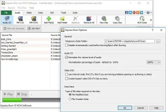 スピードはここでの重要な魅力ですが、さらに便利なのは、Express Burnが必要に応じてファイルを別のフォーマットに変換できることです。MP3でない音楽データを録音する場合には優れています。 CDを作成する準備は非常に簡単ですが、書き込みプロセスはハードウェアによって異なりますが、Express Burnは高速ドライブをサポートしています。 Express Burnには、ビデオDVDオーサリング、データDVD書き込み、さらにHDDVDディスクとBlurayも含まれています。データディスクも用意されており、このプログラムではISOイメージやその他のさまざまな種類のデータファイルを作成できます。